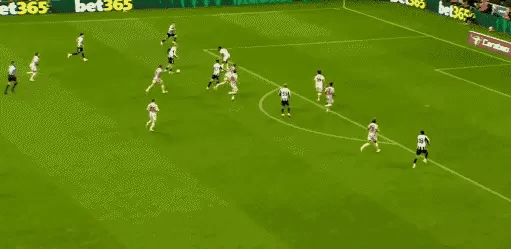 第19分钟,纽卡斯尔联连续的一角配合,吉马良斯突然一脚精准直塞,奥苏拉从两名防守球员中间穿过,禁区右侧面对守门员一脚低射破门,纽卡2-0领先。