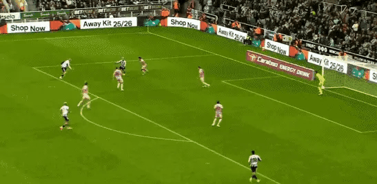 第17分钟,纽卡斯尔联禁区前沿配合,10号球员安东尼戈登禁区弧顶远射被挡,造成对方禁区内混乱,乔林顿抓住机会推射破门,纽卡1-0领先。
