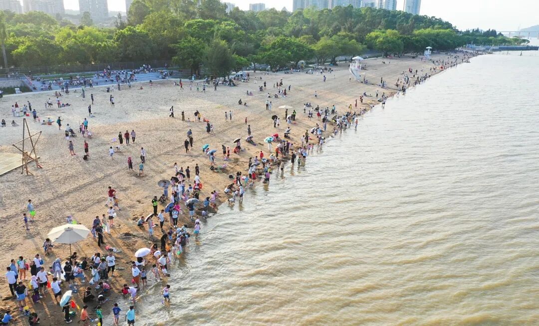 海岸线上的新建沙滩备受追捧。“想不到广州也有了坐地铁就可前往的沙滩,在这里看着宽阔的珠江奔流向海,非常惬意。”家住广州番禺的李浩带着家人第一时间前往打卡。