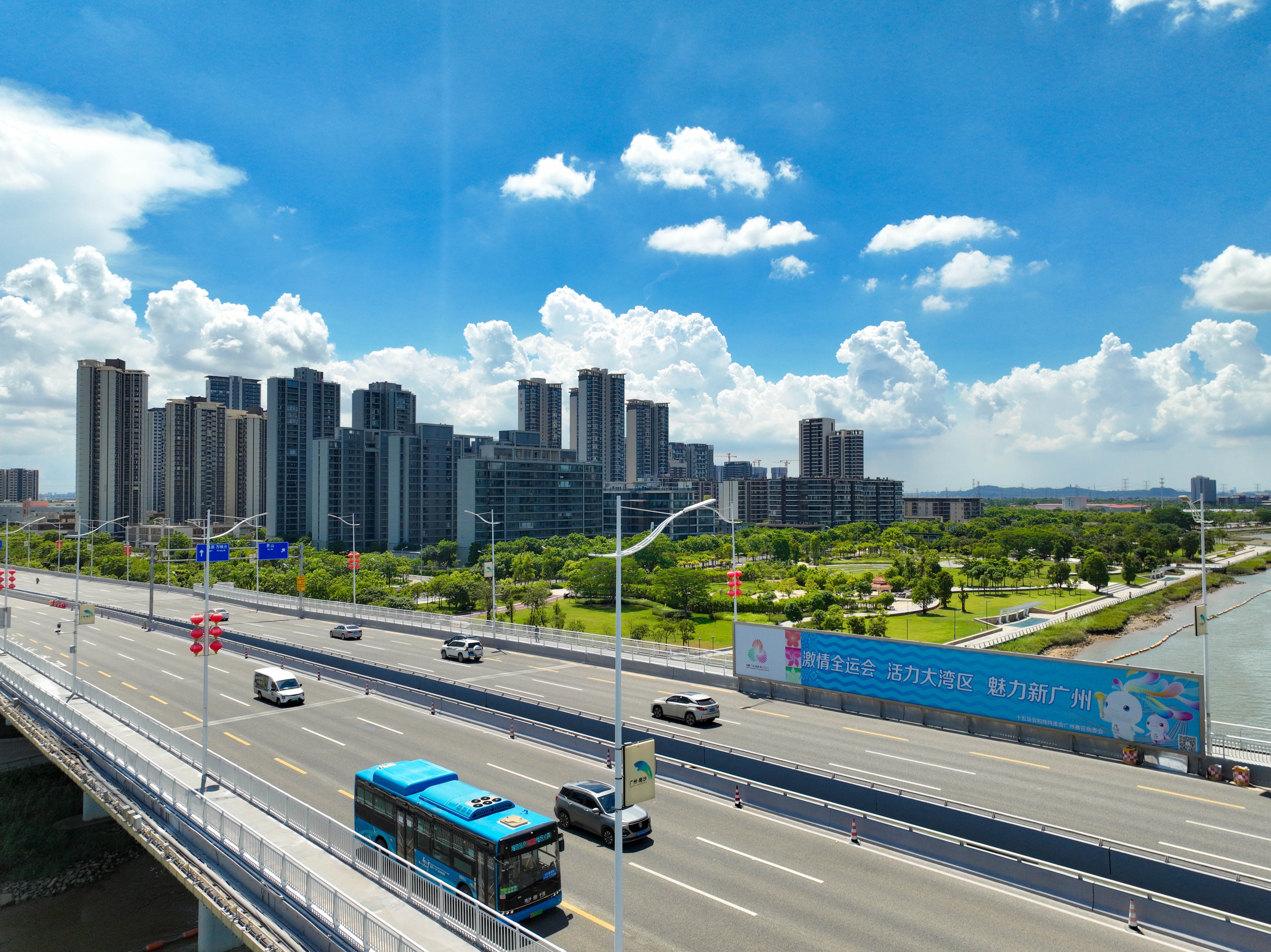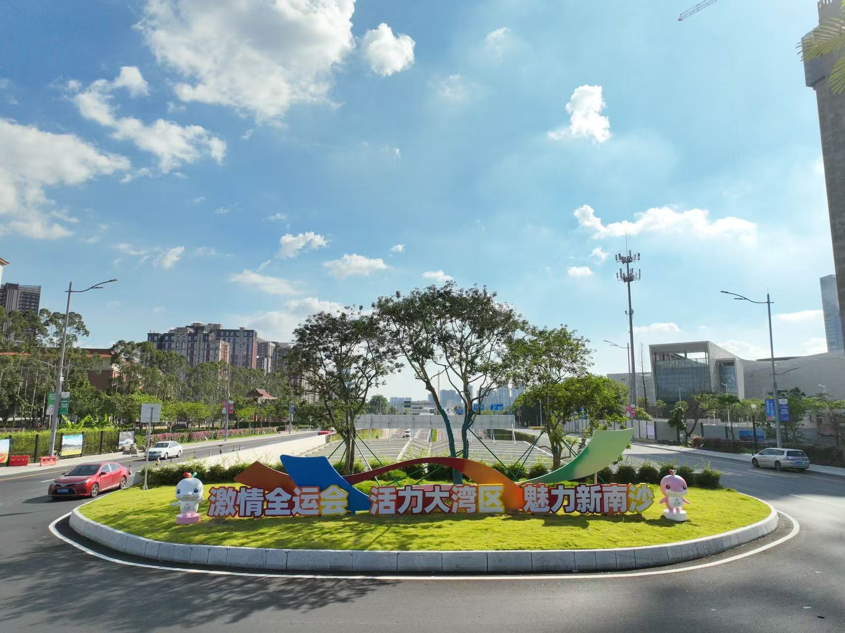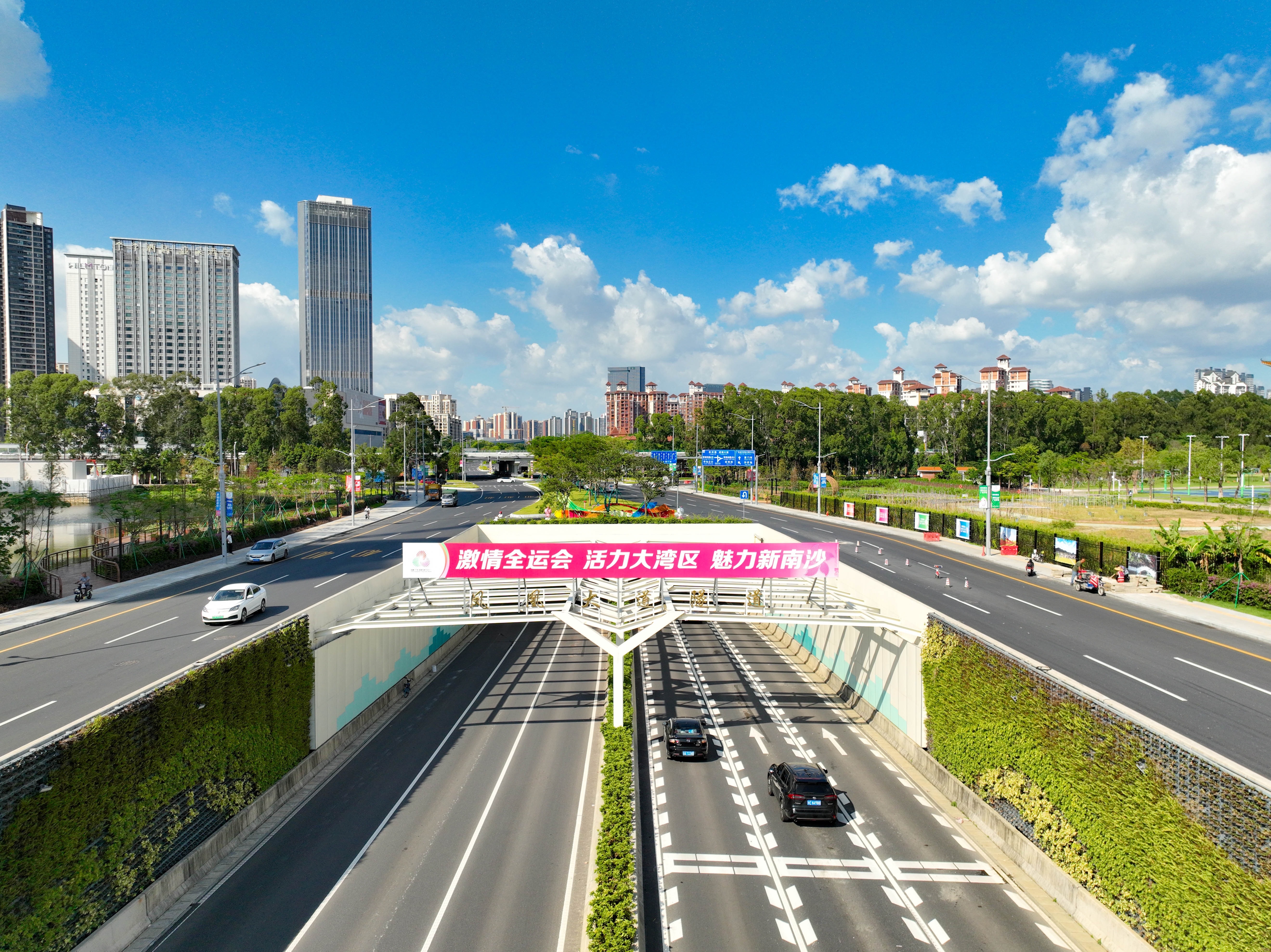 办赛事就是办城市。10月的南沙,处处洋溢着全运会的热烈氛围,进港大道旁、人行天桥上、绿化灌木丛,随处可见的十五运会和残特奥会会徽,映衬中心城区、海岸线建设的“精致范儿”“诗和远方”,成为城市精神文明“繁荣、包容”的“南沙表达”。