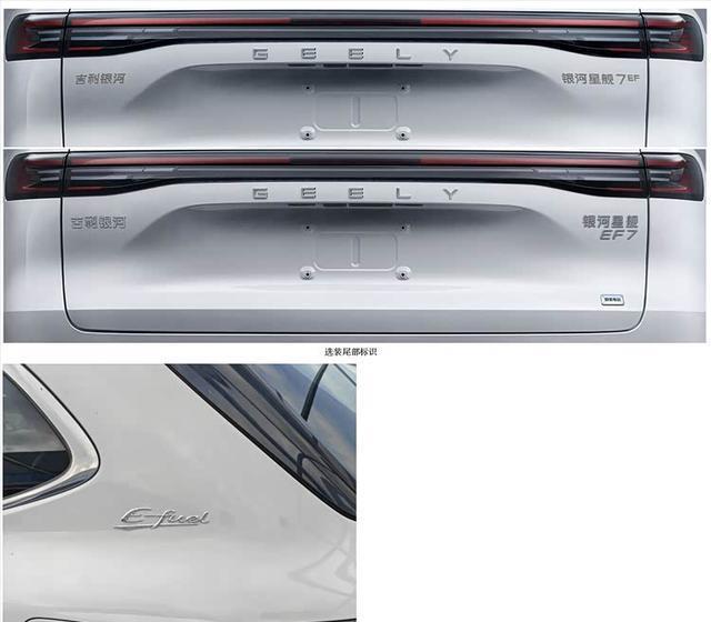 吉利银河星舰7是一款紧凑型SUV,目前在售的车型采用插混动力,后续将新增纯电车型,而近日官方又申报了一款“甲醇插混版”新车,外观造型和现款星舰7保持一致,尾部及侧后方增加了专属的“EF”标识(e-fuel电子燃料),车辆将配备极光湾BHE15-BFDM甲醇专用插混发动机,发动机可输出93KW的最大功率,电池方面配备的是磷酸铁锂电池组。