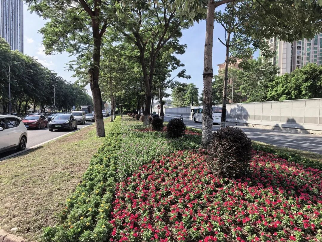 同步推进路域环境提升,完成1.7万平方米绿化带品质提升、对沿线绿植精细化修剪、增补数千株簕杜鹃,为行车旅途增添了盎然生机。